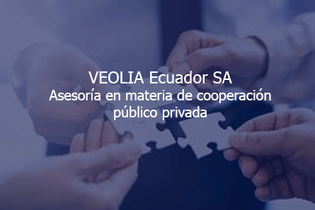 - Asesoría en materia de cooperación público privada para proyectos de Agua Potable, Saneamiento Ambiental y Desechos Sólidos a la empresa VEOLIA Ecuador S.A