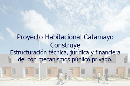 - Estructuración técnica, jurídica y financiera del Proyecto Habitacional Catamayo Construye con mecanismo público privado.