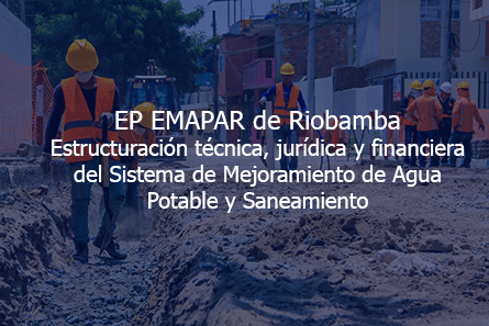 - Estructuración técnica, jurídica y financiera del Sistema de Mejoramiento de Agua Potable y Saneamiento para la EP EMAPAR de Riobamba, para un proceso de alianza estratégica.